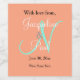 Couleur de fruits frais cantaloupe avec script élégant Monogramme initial en bleu turquoise. With Love From, Mariage Date, et Nom de la bouteille de vin écrit en noir. Personnalisez-vous pour votre mariage ou autre événement. Soirée d'accueil de mariage. La ligne dernière peut être modifiée avec un autre texte ou supprimée. Conception originale © TamiraZDesigns.
