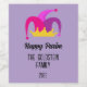 Ajoutez une touche festive à vos célébrations Purim avec notre Sticker à vin Purple Purim personnalisé! Avec des teintes violettes vibrantes et un casquette purim ludique, cet autocollant est parfait pour rendre votre manot Mishloach (paniers cadeaux) extra spécial. Le point culminant ? Un nom de famille personnalisé ! Ajoutez votre nom de famille à la conception, comme "La famille Cohen", en créant un autocollant unique et réfléchi qui est vraiment à vous. Parfait pour sceller des enveloppes, décorer des sacs-cadeaux ou ajouter du flair aux faveurs de la fête, cet autocollant combine créativité et touche personnelle, rendant vos célébrations Purim inoubliables.