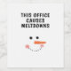 Ajoutez un peu d'humour à votre groupe de travail de vacances avec ceux-ci Cet Office Causes Meltdowns Citation drôle Étiquettes de vin Snowman. Il est conçu avec un visage de bonhomme de neige mignon et la phrase humoristique. Idéal pour décorer vos bouteilles de vin pour la fête de Noël au bureau !