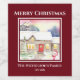 Basé sur ma peinture aquarelle, Snowy Cottage, une peinture d'une belle photo d'hiver d'un chalet de toit de chaume anglais recouvert de neige, avec un conifère décoré à l'avant de la maison et un joli bonhomme de neige saluant au premier plan. Le chalet était entièrement éclairé à l'intérieur, brillant avec la chaleur de la saison festive. Le design a un cadre carré rouge foncé sur le côté extérieur et des textes qui peuvent être personnalisés sur le dessus et le bas. Consultez mon magasin pour trouver les articles correspondants !