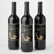 Étiquettes de bouteille de vin à talon d'or avec de jolies chaussures à talon haute parties scintillant d'or sur un élégant arrière - plan noir et or avec élégant script or Cheers. Vous pouvez facilement customiser ces étiquettes de bouteilles de vin noir et or pour votre événement en ajoutant simplement le texte de votre choix.