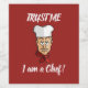 Chef avec casquette, collier rouge et texte personnalisé.