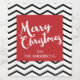 Ce étiquette de bouteille de vin de Noël présente un motif moderne en zigzag en noir sur un arrière - plan blanc. Un carré rouge au centre de la serviette est accentué d'une police de caractères, en blanc, qui dit : Joyeux Noël. Vous trouverez également dans la boîte du texte personnalisé pour votre nom et votre année.