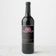 Elégant noir 50e anniversaire mariage étiquettes de vin pleine taille, avec des graphiques de fleuris dorés et un coeur rose bordée d'or, avec texte graphique or lisant 50. Personnalisez le texte personnalisé rose et jaune doré pour lire ce que vous voulez.