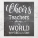 Cadeau d'appréciation de l'enseignant avec script de typographie blanche "les enseignants changent le monde un enfant à la fois" citation inspirante et applaudissements sur l'arrière - plan de tableau noir.