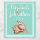 Silhouette de coquillages côtiers et nom de couple en verre de mer vert mariage vin étiquettes.