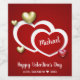 Illustration Heureuse Sainte-Valentin élégante et moderne présentant des coeurs dorés et rouges 2D et 3D sur un arrière - plan à motifs rouges.