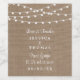 Simple mais élégante, la collection rustique de mariage de lampes à cordes de burlap est un design étonnant avec de belles lumières à cordes blanches suspendues sur un arrière - plan rustique effet burlap, qui est parfait pour toute célébration de mariage campagnard. Ces étiquettes peuvent être personnalisés pour votre occasion spéciale et feraient le étiquette parfait pour votre mariage, douche nuptiale, fête de fiançailles, fête d'anniversaire et bien d'autres occasions spéciales. Ajoutez votre libellé personnalisé à cette conception à l'aide des zones "Modifier ce modèle de conception" situées à droite de l'élément, ou cliquez sur le bouton "Customiser" pour arranger le texte, modifier les polices et les couleurs et ajouter des informations ou des images supplémentaires à cette conception.