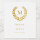 Étiquette Pour Bouteilles De Vin Couronne de laurier doré élégant monogramme blanc