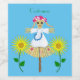 Cute Blonde Pigtails Scarecrow avec de grands tournesols, pour personnaliser en changeant de nom sur votre couleur arrière - plan