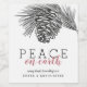 Le design présente un dessin à la main d'une branche de pin avec pomme de pin, "paix sur terre", nom de l'entreprise en caractères modernes et script.