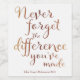 Un magnifique étiquette de retraite ou d'appréciation du vin. Parfait pour une fête de retraite ou un cadeau de remerciement. Ce grand dicton "n'oubliez jamais la différence que vous avez faite" est présenté dans une typographie couleur cuivre/or. Peut être personnalisé avec un nom et une date - ou un autre message.