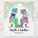 Dégustez vos invités avec ces amusants étiquettes à thème mariage à thème de dinosaures mariés et mariés dinosaures. Mariée et mariée en couleur bleu rose violet jaune vert et feuillage de la jungle verte avec facile à personnaliser les noms des mariés et des mariés et la date mariage dans le script moderne de typographie lunaire. Dino original unique oeuvre de l'artiste Catherine Sweetman