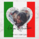 Cette étiquette de bouteille de vin personnalisée présente un thème d'amour ou de mariage italien avec un cadre en forme de cœur. Le drapeau de l'Italie est placé à l'arrière avec un cadre de cœur en mosaïque. Une photo d'exemple d'un couple marié ou fiancé ou d'amis est placée au centre.