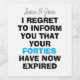 **Description : *** Ce étiquette de vin hilarant est le cadeau d'anniversaire idéal pour toute personne ayant 50 ans ! Avec le texte plein d'esprit "Vos quarante ans ont expiré", ce étiquette ajoute une touche humoristique à toute bouteille de vin, ce qui en fait un cadeau inoubliable pour célébrer un 50e anniversaire. Le design est entièrement modifiable, vous permettant de personnaliser les détails pour convenir au destinataire. Que vous soyez à la recherche de rire à une fête d’anniversaire ou de faire un cadeau amusant et unique, ce étiquette de vin sera un succès. Il est facile d’appliquer et de transformer instantanément une bouteille en une surprise d’anniversaire mémorable. Célébrez 50 ans avec style, humour, et, bien sûr, vin! drôle étiquette de vin, 50e anniversaire étiquette de vin, cadeau d'anniversaire jalon, étiquette de vin éditable, cadeau de 50e anniversaire, étiquette de vin pour 50e anniversaire, étiquette d'anniversaire humoristique, 50 ans cadeau, étiquette de bouteille de vin d'anniversaire, drôle anniversaire jalon anniversaire550 ans, cinquante ans, drôle de étiquette de vin,