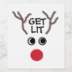 Drôle Reindeer de Noël Get Lit Vin Étiquette mettra le sourire sur les visages à votre fête de Noël! Idée cadeau pour les amateurs de vin ou décorer les bouteilles à la fête ! Étiquette arrière - plan blanc avec le visage de rennes de nez rouge et la phrase "Get Lit" centrée entre les bois de rennes