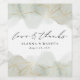 Elégant et moderne étiquettes de vin mariage avec "love & Merci" dans un magnifique script de calligraphie avec vos noms et date mariage affichés ci-dessous. L'arrière - plan présente des formes d'aquarelle vert sauge poussiéreuse avec des accents géométriques de feuille d'or imitation. Conçu pour coordonner avec notre collection de mariages géométriques d'aquarelle dorée Dusty Sage Green.