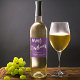 Étiquette Pour Bouteilles De Vin Écriture blanche sur fond de denim violet, nom d'e