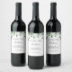 Ces élégants mariages botaniques et fleuris personnalisés vous remercient étiquettes de bouteille de vin ajouteront une touche d'élégance à vos cadeaux de faveur. Le design moderne comporte une bordure de verdure aquarelle peinte à la main avec un script noir moderne en lettres manuscrites qui dit "Merci" avec vos noms et date mariage pour personnaliser. Meilleurs voeux pour votre mariage et mariage ! Conçu par Susan Coffey.