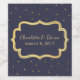 Étiquette de vin mariage chic, de taille réelle, dans un bleu foncé, avec de petits pois dorés et une zone de texte encadrée d'or décoratif. Personnalisez le texte pour votre journée spéciale. Idéal pour la réception ou comme service pour vos invités.