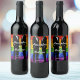 A coordinated reception starts with the details. These wine bottle labels match the full Elegant Modern Rainbow suite, personalized with the couple's names, wedding date, and grape varietal — elevating the guest experience from the first pour to the last toast.