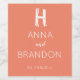 Elégant, minimal, corail, pêche et blanc étiquettes de vin initial. Mariage moderne, monogramme, design de script. Pour la mariée et le marié. Vous pouvez modifier la conception avec les noms, l'initiale et la date.