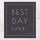 This elegant wedding wine label features a sophisticated dark navy background with crisp white text, creating a striking contrast. The design combines bold uppercase letters for "BEST DAY" and a flowing script font for "ever," offering a balanced mix of modern and classic styles. Perfect for commemorating your special day, the customizable date placeholder allows you to personalize this minimalistic yet chic label effortlessly. Its clean layout and refined typography convey a mood of celebration and sophistication, making it ideal for weddings or significant anniversaries.