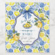 Un design élégant de Baby Shower avec un fond de carreaux bleus et des citrons.