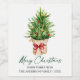 Moderne Élégante Étiquette de vin de Noël à l'encre de calligraphie comprenant un pin aquarelle dans un sac en papier avec un ruban rouge, ornements de Noël or et rouge.