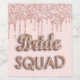 Une étiquette pour une douche de mariée ou une fête de bachelorette. Un fond rose doré clair, avec une goutte rose doré élégante, un aspect de peinture qui goutte. Avec le texte : Bride Squad écrit avec une police de caractères de style ballon, de couleur rose doré.