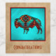 Personnalisez ce Étiquette de vin de Buffalo Sud-Ouest "One of a Kind" ! On y trouve un buffle ou un bison du sud-ouest en turquoise, orange et noir et le mot "Félicitations"! Design D'Art Original Par L'Artiste Kerry Miller.