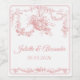 Ajoutez une touche d'élégance romantique française à votre célébration de mariage avec cette étiquette de bouteille de mariage personnalisée Toile de Jouy dans un rose blush doux. Avec un cadre vintage orné et une délicate illustration de cupidon et de fleurs inspirée des gravures françaises du XVIIIe siècle, ce design apporte un charme intemporel et une sophistication raffinée à votre décoration de table.