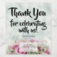 Ce étiquette de bouteille de vin amusant dit "Merci pour célébrer avec nous !" Conçu dans le cadre de notre collection de Mariages Roses Roses Roses Roses Roses Roses, il y a un endroit pour entrer le nom du couple, la date du mariage, et le type de vin. Une excellente façon de remercier les membres de la fête de mariage ou les invités d'avoir fait partie de votre journée spéciale!
