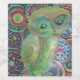 peinture de chouette mignonette avec un arrière - plan motif de cercles et de points en rouge bleu et jaune font ce étiquette de vin de chouette amusant élégant