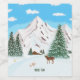 Scène hivernale avec montagnes enneigées, cabine rustique et un buck surplombant la vallée en dessous de lui. Oeuvre originale de W.B.