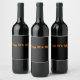 Étiquette de vin noir avec texte orange.