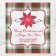Festive pleine taille étiquette de vin de Noël fait dans le rouge, vert et blanc Stewart King George Tartan Plaid motif. Un pois rouge et blanc encadré blanc zone de texte décoratif, au milieu de la étiquette, a un joli poinsettia fait dans un look de papier peint. Personnalisez le texte rouge pour votre fête de vacances ou vos besoins de cadeaux.