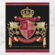 Créez votre propre armoiries, emblème, insignia ou crête de famille aristocratique avec ce magnifique escutcheon classique ou design de bouclier. Des motifs rouges pourpres décorent un bouclier surmonté d'une couronne dorée et flanqué d'un dragon héraldique médiéval. Une bannière correspondant tient votre date de mariage personnalisée / date de naissance / slogan ou cri de bataille. Le bouclier a de l'espace pour vos initiales monographiques. La bannière inférieure porte votre nom de famille. Il y a aussi de l'espace ci-dessous pour votre citation, devise ou message préféré. Remplacez l'exemple de texte par le vôtre pour un cadeau personnalisé. Un design neutre pour les femmes qui conviendra aux familles, aux groupes, aux couples ou aux individus. Fait un cadeau merveilleux pour Mariage, Anniversaire, Anniversaire, Retraite, Promotion, Fête des Pères, Bachelor Party, Wedding shower, Graduation, Journée Internationale de l’Heraldique, Fêtes médiévales ou d’Imaginaire et autres occasions spéciales.