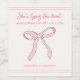 Ajoutez une touche finale sucrée à vos faveurs de mariage avec nos étiquettes de vin "Elle noue la corde" Coquette Rose ! Conçues pour compléter parfaitement nos invitations coordonnées, ces autocollants présentent un ruban rose délicat, créant une ambiance féminine et fantaisiste. C’est le détail parfait pour rassembler le thème de votre mariage.