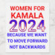 Kamala Harris à la présidence à l'élection présidentielle américaine de 2024. Nous voulons aller de l'avant, pas en arrière.