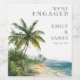 Ces étiquettes de vin pour fête de fiançailles moderne élégante à l'aquarelle sur la plage tropicale peuvent être personnalisées avec vos informations en typographie élégante. Conçues par Thisisnotme©