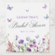 Voici notre "Vie des papillons" Purple Floral Fête des mariées Affiche de bienvenue Célébrez la future mariée avec élégance et charme. Ornée de délicates fleurs violettes évoquant une vie de bonheur, cette invitation donne le ton parfait pour une délicieuse fête de la douche nuptiale. Rejoignez-nous alors que nous honorons la mariée et la douche avec amour et bénédictions alors qu'elle se prépare pour sa journée spéciale. Retrouvons-nous pour un rassemblement mémorable rempli de rires, de joie et de beaux moments ! Ne manquez pas cette occasion de créer des souvenirs chéris avec notre Fête des mariées florale pourpre "Vie des papillons"