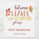 Typographie rouge, orange, jaune Thanksgiving étiquette de vin personnalisé avec un texte qui dit, "Feuilles d'automne et citrouille s'il vous plaît". Customisez facilement en ajoutant votre propre photo. Envoyez cette carte personnalisée Thanksgiving photo plat à vos proches.