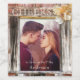 Étiquette de vin fiançailles romantique avec votre photo préférée encadrée par du bois rustique et une fleur.