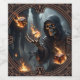 Flames gothiques, gardienne des dés brûlants. La figure de la Grande Faucheuse se trouve au milieu d'un cercle de dés brûlants, rappelant les petites sources de feu et suggérant des énergies magiques ou apocalyptiques. L'arrière - plan sombre et flou renforce l'atmosphère mystique et triste.
