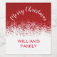 Flammes de neige sur une bordure bordeaux légère avec script décoratif sur le dessus et sans serif informations personnelles sur le fond. Une merveilleuse combinaison de deux couleurs de vacances classiques.