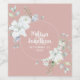 Étiquettes de vin personnalisables élégantes et romantiques pour votre réception de mariage, avec un beau bouquet de fleurs blanches délicates aquarelles sur un fond rose pastel chic. Modifiez facilement les champs du modèle pour ajouter les noms des mariés dans un script blanc moderne, et la date de votre mariage dans une police stylée en majuscules.