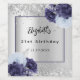 Un arrière - plan à l'aspect faux argenté décoré de fleurs bleues, de fleurs et de parties scintillant faux argentées, brille. Personnalisez et votre nom et une date.
