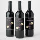 Personnalisez facilement le texte sur ce étiquette de bouteille de vin qui est décoré de deux jolis papillons blancs sur une fleur de verveine rose. Papillons et fleurs sont posés sur un arrière - plan noir.