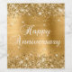 stickers mariage anniversaire vin étiquette pour leur célébration spéciale. Parties scintillant d'or brillant et faux sur le bord supérieur et le bord inférieur sur une fausse feuille de métal brossé jaune doré à l'ombre. La couleur du graphique texte Happy Anniversary peut être modifiée. Les couleurs principales de ce design girly sont l'or, le jaune doré, le beige et le blanc.